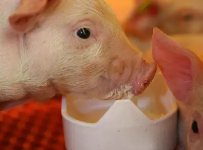 Leitões aprendendo a comer