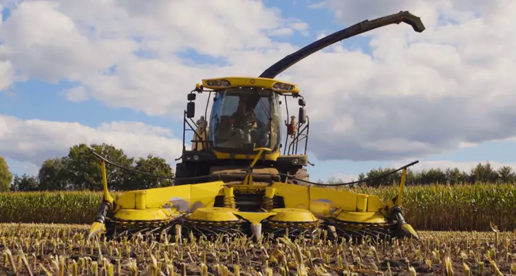 O milho é colhido para passar pelo processo chamado ensilagem, que garantirá o armazenamento de comida para o inverno, pois nesta época as forragens ficam mais escassas. Uma máquina chamada colhedora de milho corta a planta perto do chão, picando tanto a planta quanto as espigas, descarregando tudo em uma carreta puxada por um trator que trabalha ao lado da colhedora.